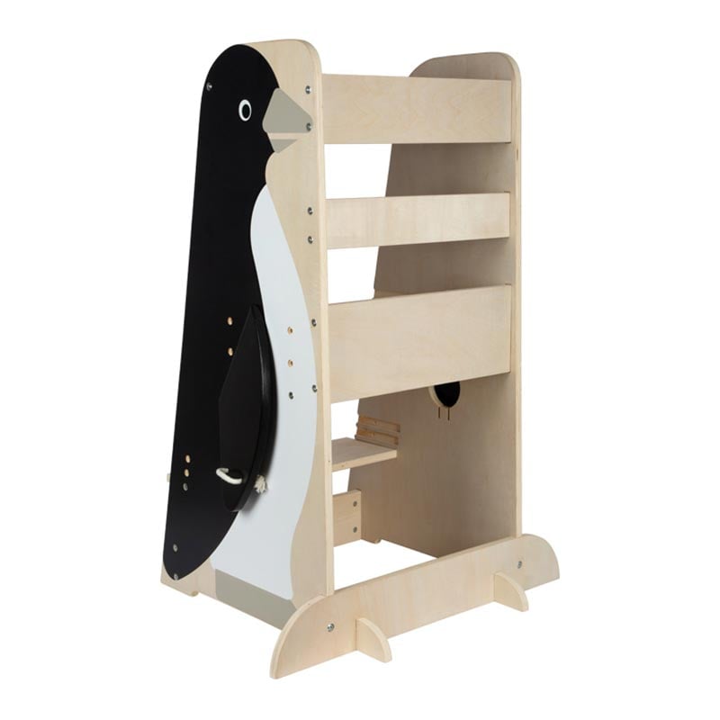 Помощната кула Small Foot Пингвин е идеалното допълнение към дома на всяко семейство с малки деца. Тя е създадена, за да подпомогне самостоятелността на детето и да му позволи безопасно да участва в ежедневните дейности на възрастните, като готвене, миене на ръце или творчество. Със своя стабилен дървен дизайн и симпатична форма на пингвин, тази помощна кула съчетава функционалност и забавление.