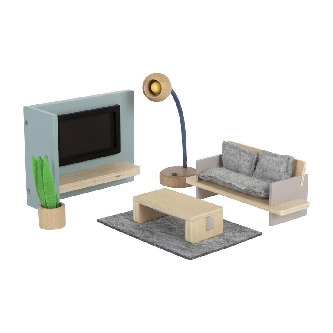 - Комплект мебели за всекидневна: В този комплект ще откриете всичко необходимо за обзавеждане на една уютна всекидневна стая за кукли – комфортен диван, удобни кресла, масичка за кафе и стойка за телевизор. Всеки елемент е изработен от висококачествени материали, осигуряващи не само здравина, но и естетическа привлекателност.