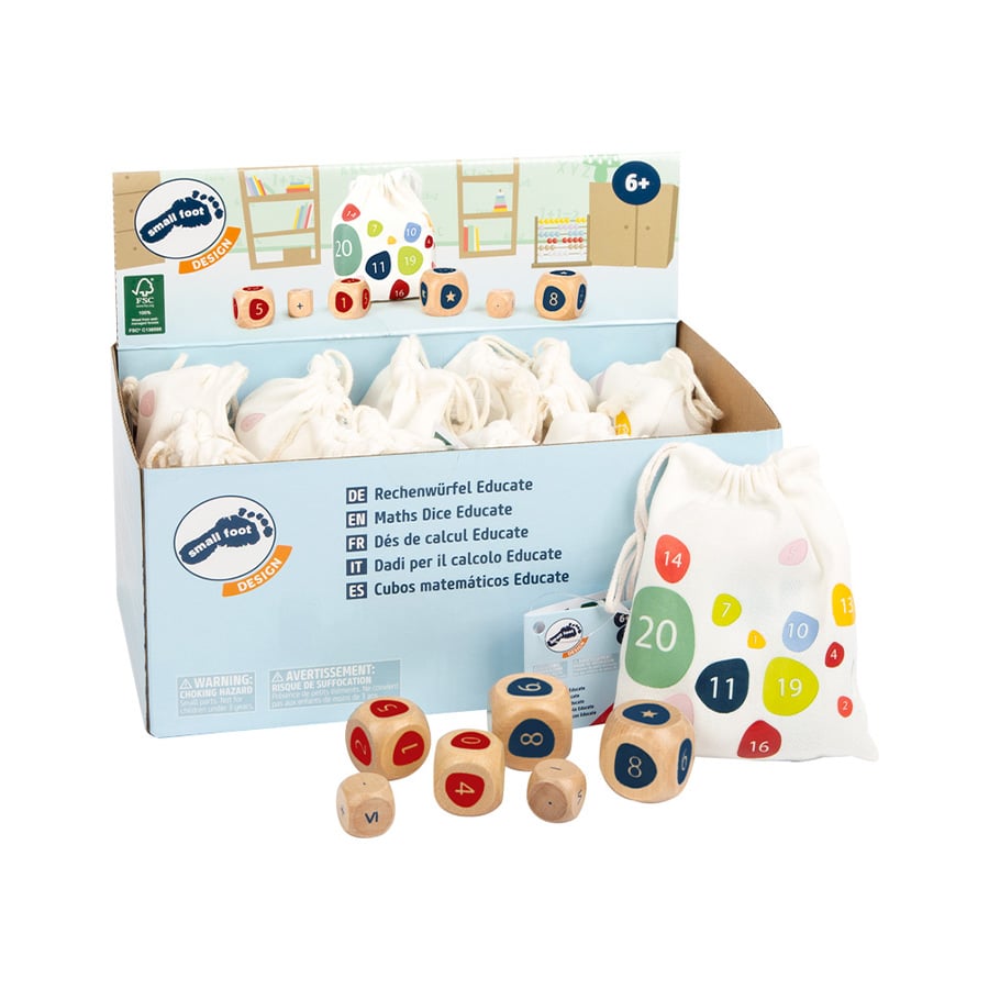 Small Foot Торбички със зарчета Математика, 12 броя в дисплей