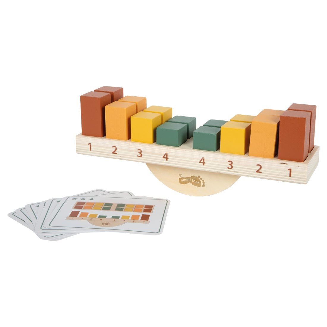 Монтеcори играта за баланс, изработена от висококачествено дърво, е образователна игра за подреждане, която по забавен начин учи децата на баланс и равновесие. Цифрите, отпечатани върху люлката, помагат на децата да разберат връзката между тегло, позиция и равновесие – напълно в духа на Монтеcори подхода, основан на самостоятелно експериментиране и осъзнаване. Докато подреждат и балансират елементите, малките играчи не само развиват фината си моторика, но и търпение, както и координация между очи и ръце. Едновременно с това играта подпомага когнитивното развитие и тренира логическото мислене – перфектен Монтеcори инструмент за игра у дома, в детската градина или при ерготерапия.