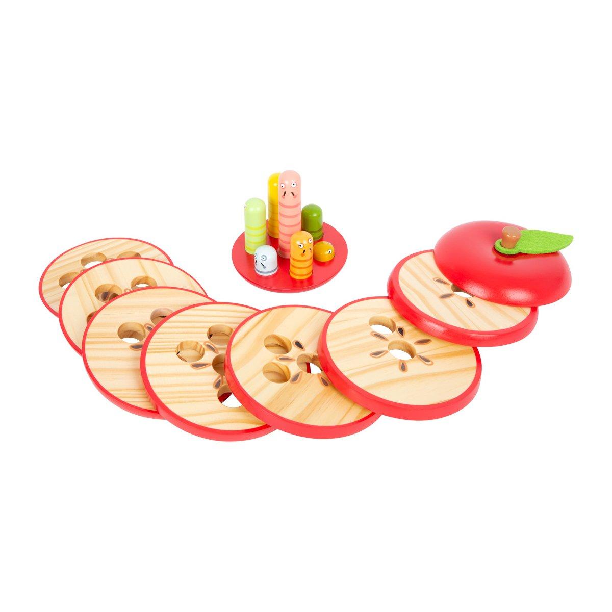 • Здравата, ярко оцветена ябълка, изработена от масивно дърво, е както образователна игра, така и декоративен елемент за детската стая. С филцовото листо, тя служи и като стилна декорация.