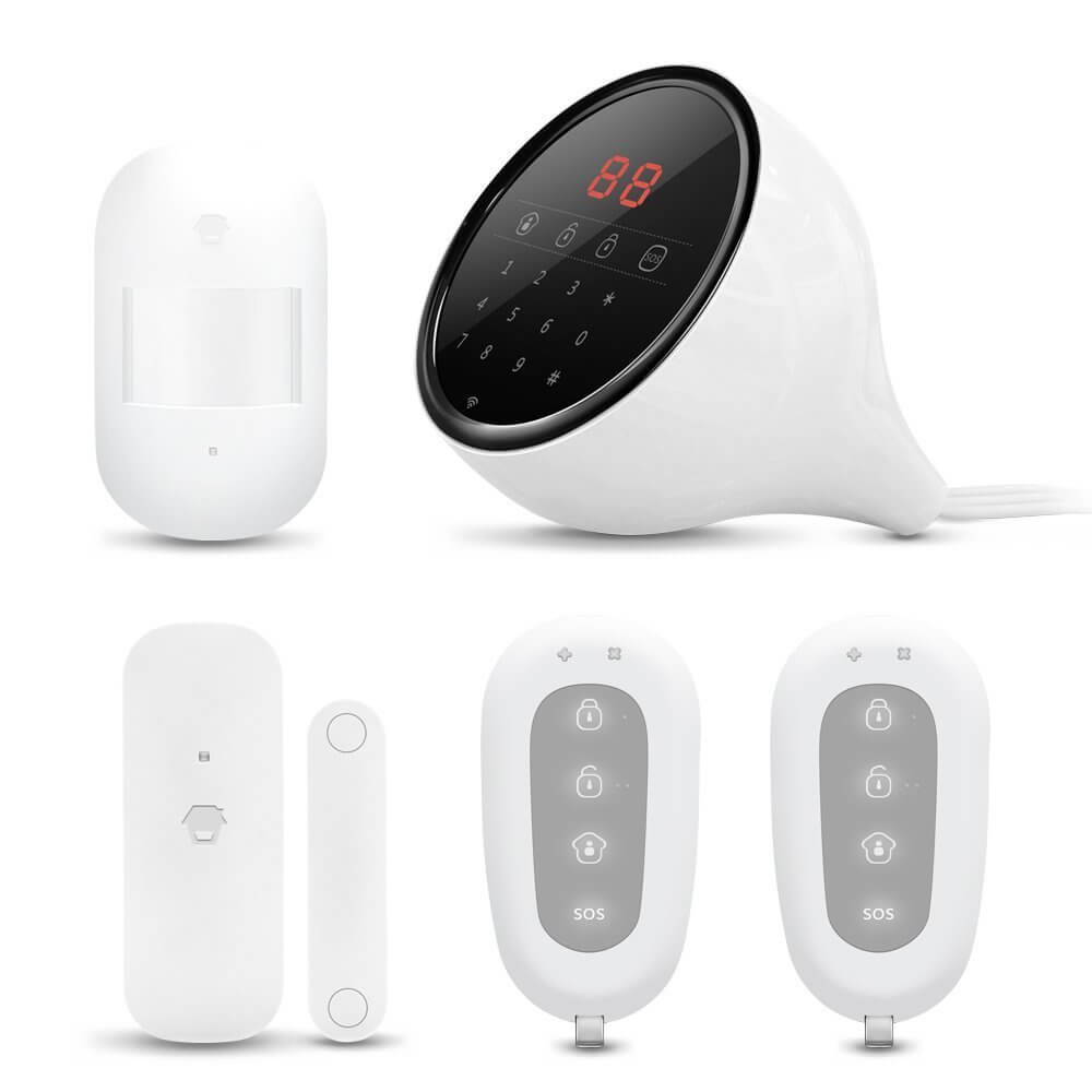 В комплекта: - 1 x WiFi / PSTN алармена система - 1 x MD2300 Безжичен детектор за движение - 1 x DS2300 Безжичен контакт за врати/прозорци - 2 x Безжично дистанционно управление RE230
