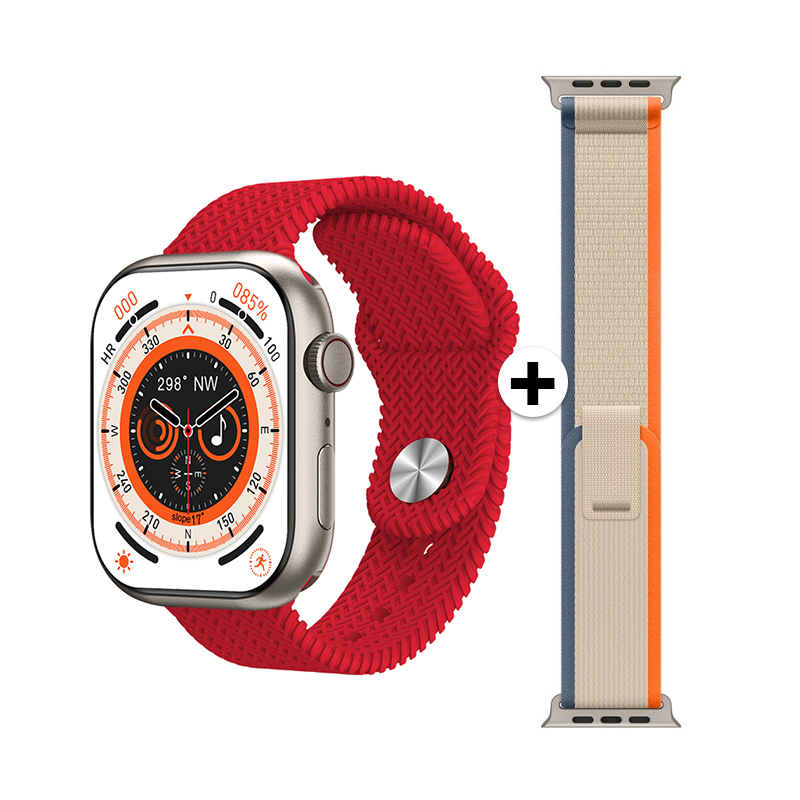 Смарт часовник HK9 Pro MAX Plus Box: SET 2 каишки, AMOLED 45мм, OEM /червен/