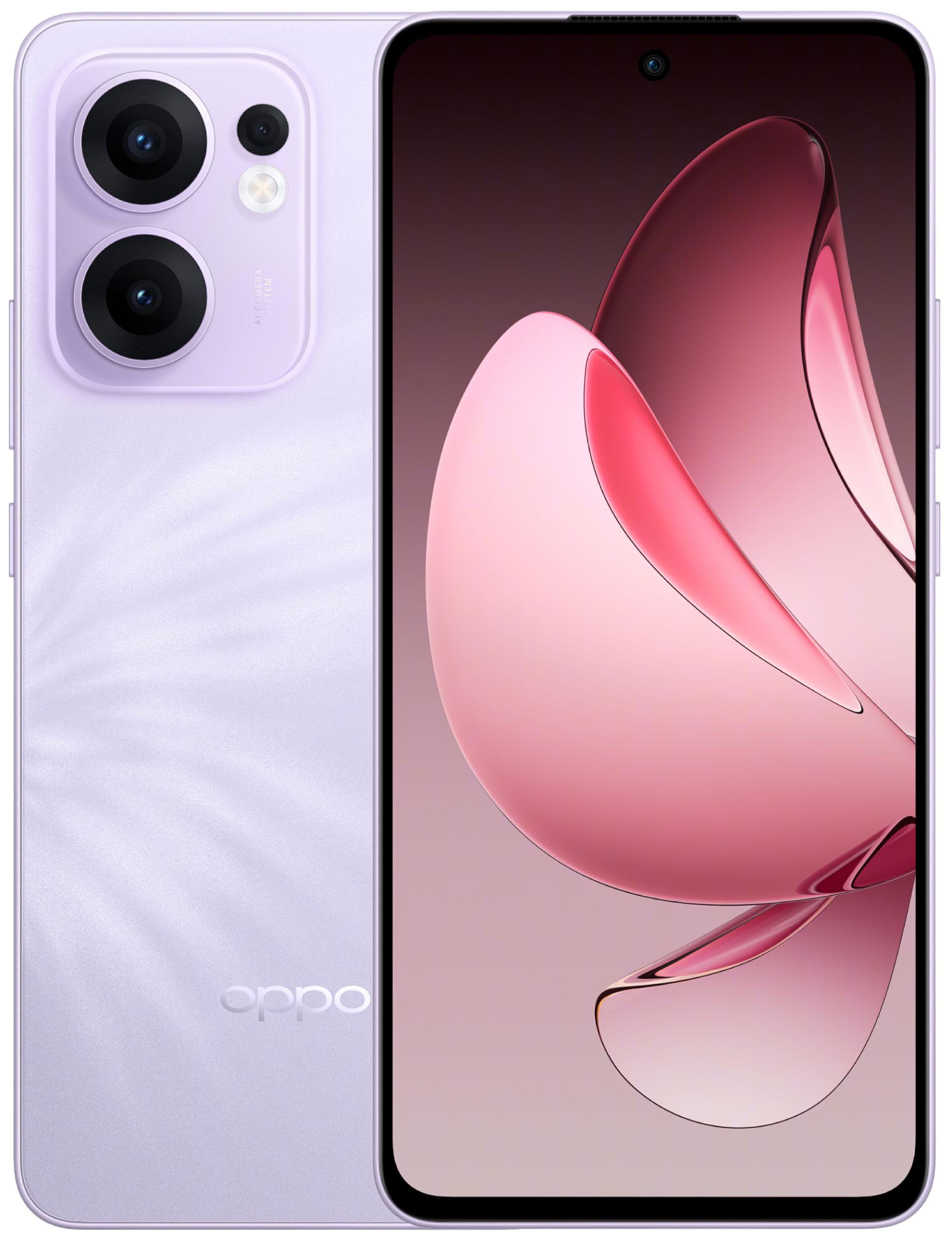 Смартфонът OPPO Reno 13 F 5G в изискан цвят Plum разполага с ултратънък корпус, 50MP AI камера за перфектни портрети, плавен 120Hz AMOLED дисплей и надеждна батерия с технология за бързо зареждане.