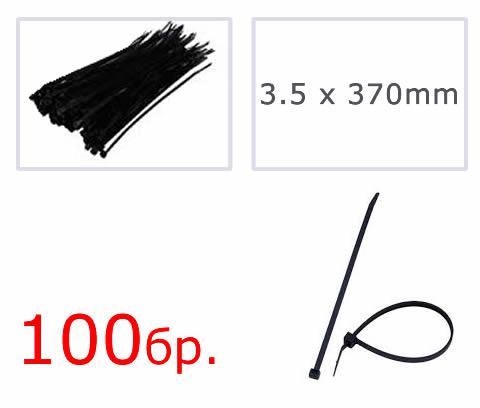 Кабелни превръзки тип "свински опашки", Самозаключващи се, Размери: 3.5x370mm, Цвят: черен, Пакет 100 броя, Цената е за пакет