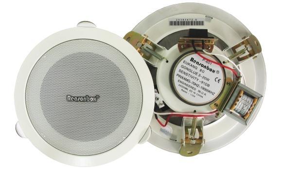 Говорител за таван, С щипки за монтаж, Мощност: 3-15W, Честотна лента: от 70Hz-19kHz, Волтаж по линията: 100V, Импеданс: 8 Ohm, Размер на говорителя: 6.5 (166мм), Чувствителност: 91dB, Размери за монтаж: ф185, Външен размер: ф220, Тегло: 0.97кг, Цвят: бял
