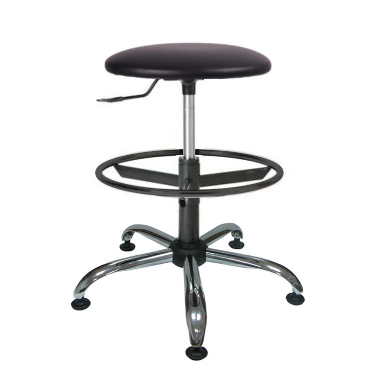 Специализиран стол табуретка Lift RB с ринг, еко кожа, метална база хром, с колелца, черен