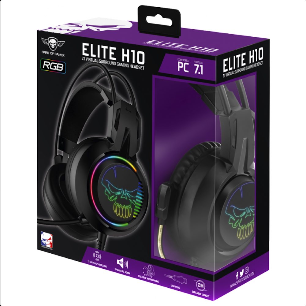 Spirit Of Gamer Elite LED 7.1 Gaming Headset H10 - RGB гейминг слушалки с микрофон и USB връзка (черен)