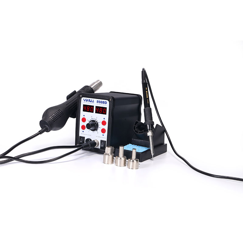 • Пистолетът се характеризира с висок въздушен поток, висока мощност и бързо нагряване, благодарение на което е идеален за безоловно запояване. Нагревателят на станцията за запояване приема ниско напрежение и работи добре при работа с чувствителни компоненти.