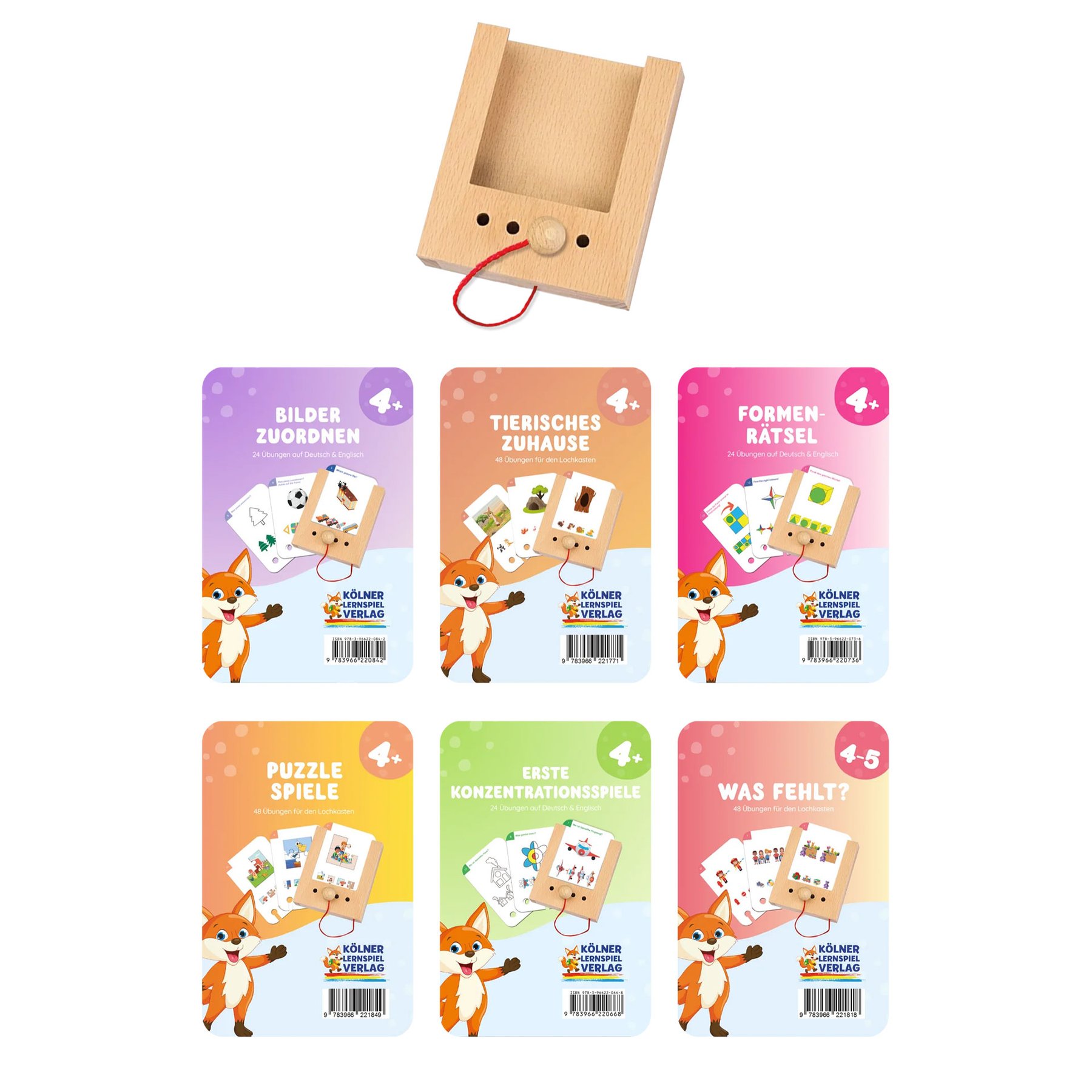 Детето поставя карта с картинка или въпрос в плъзгащия се слот и избира отговор, като вмъква дървеното колче в съответния отвор. При правилен отговор картата може да бъде извадена; при грешен – остава на мястото си. Този механизъм осигурява ясна и непосредствена обратна връзка, насърчава самостоятелната проверка и изгражда увереност в ученето.