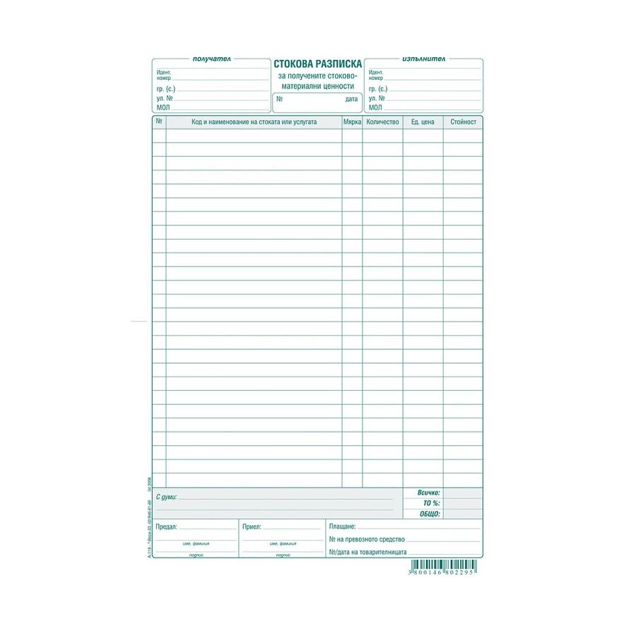 Стокова разписка (26 р.) блок А-119, вестникарска хартия, 100 л.