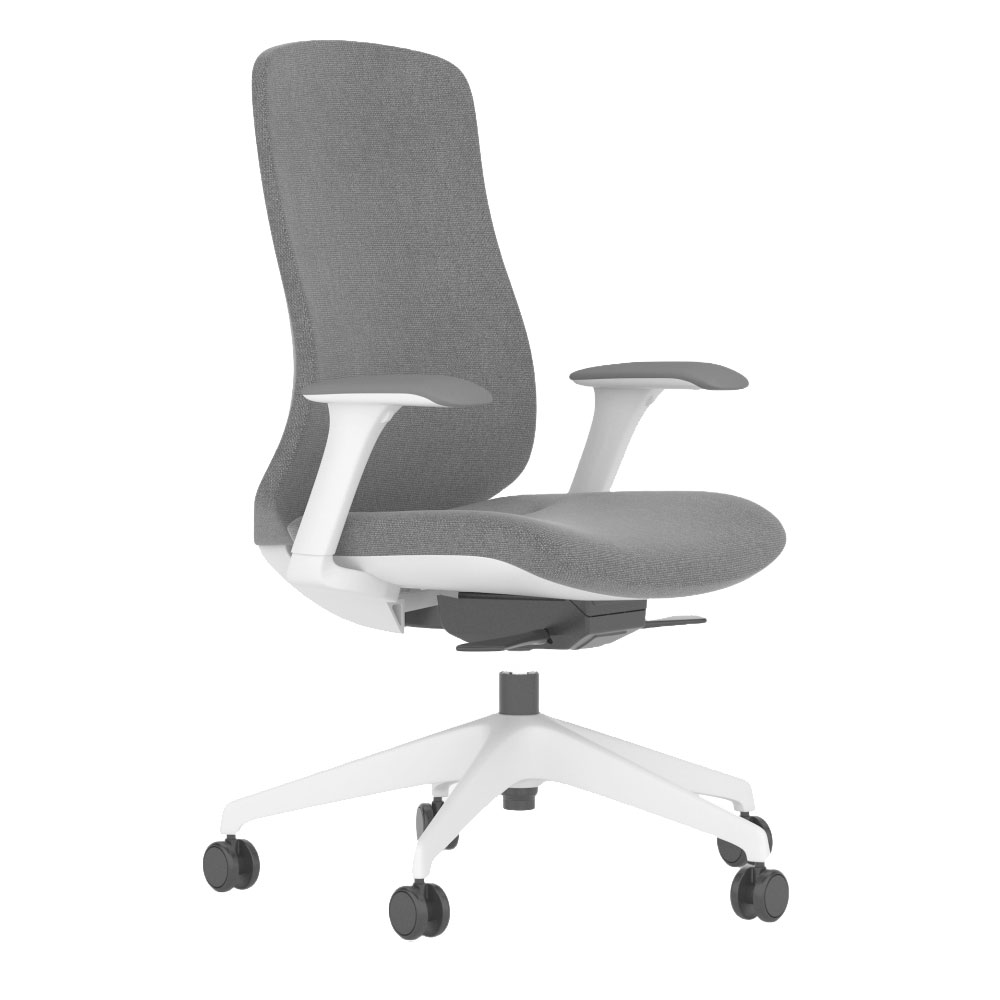 Ергономичен офис стол с полиуретанова облегалка и седалка тапицирани с дамаска.