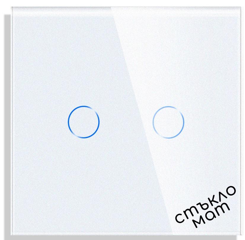 Стъклен панел за двоен сензорен ключ, комплект с монтажна метална основа 86*86mm-БЯЛ-MAT