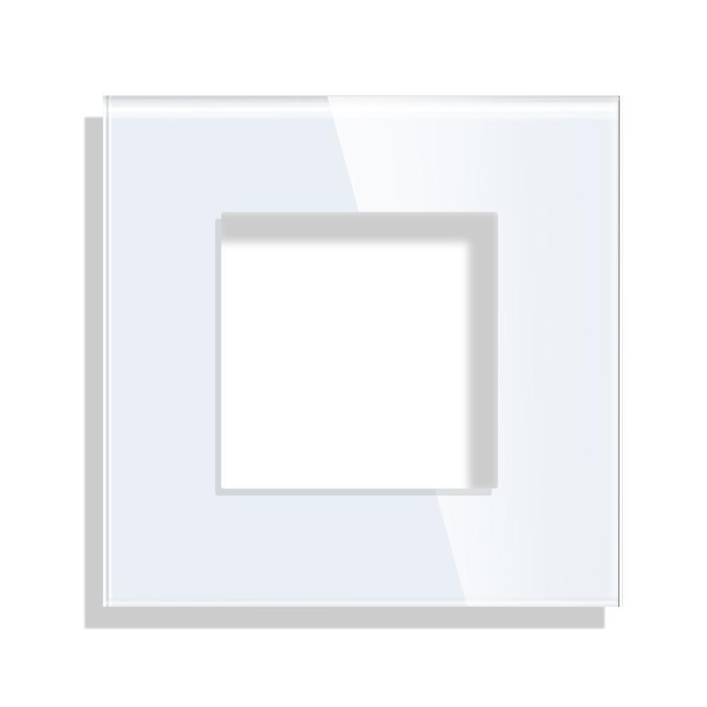 Стъклена рамка единична , комплект с монтажна метална основа 86*86mm- БЯЛ