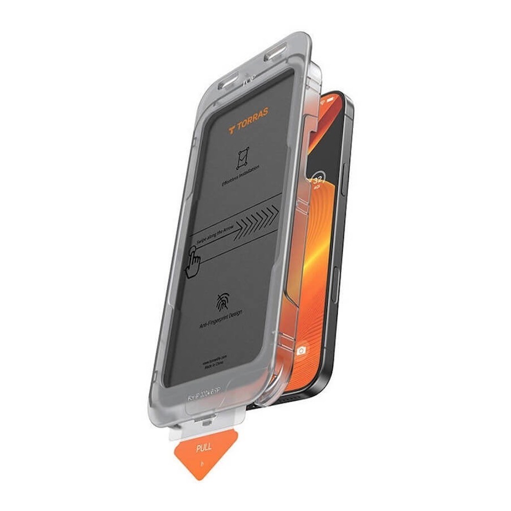 Стъклено защитно покритие с определен ъгъл на виждане за дисплея на iPhone 16 Pro Max - Torras Install Master Privacy Full Cover Tempered Glass (черен-прозрачен)