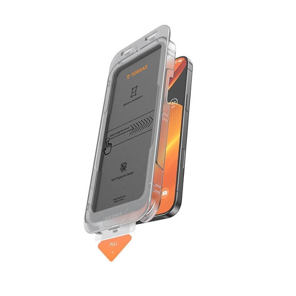 Стъклено защитно покритие с определен ъгъл на виждане за дисплея на iPhone 16 Pro - Torras Install Master Privacy Full Cover Tempered Glass (черен-прозрачен)