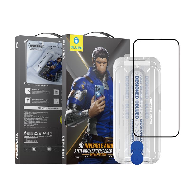Стъклено защитно покритие за дисплея на дисплея на iPhone 15, iPhone 14 Pro (черен-прозрачен)  - Blueo 3D Invisible Airbag Tempered Glass