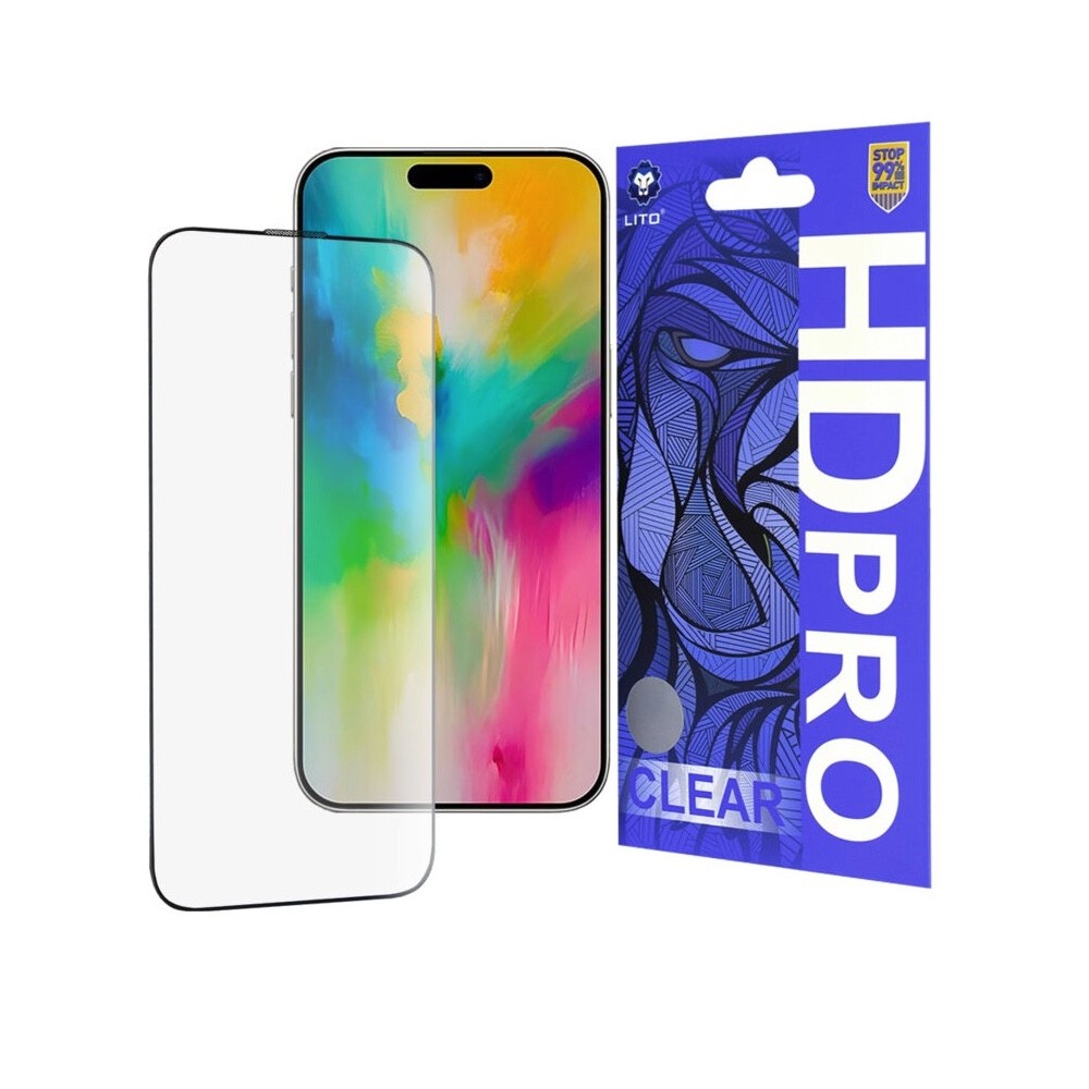 Стъклено защитно покритие за дисплея на iPhone 16 Pro (черен-прозрачен)  - Lito HD Pro Clear Tempered Glass