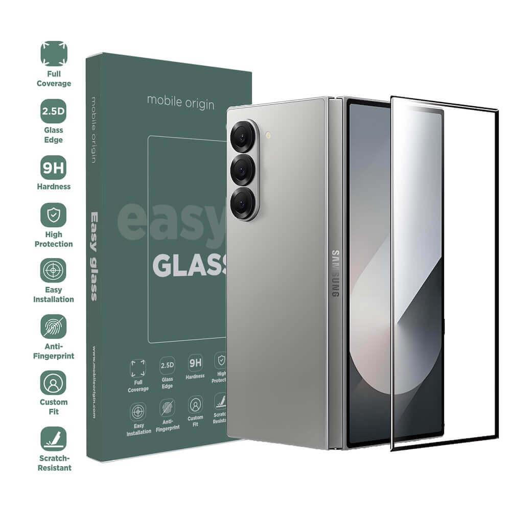 Стъклено защитно покритие за външния дисплей на Samsung Galaxy Z Fold6 - Mobile Origin EasyGlass Full Cover Tempered Glass (черен-прозрачен)