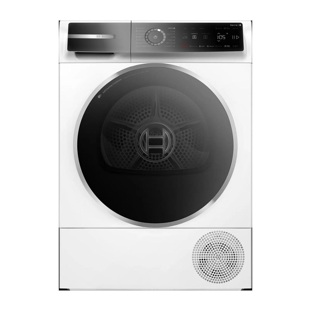 • Bosch Serie 8 WQB246CNBY е висок клас сушилня с термопомпа, която съчетава изключителна енергийна ефективност, интелигентна свързаност и максимална грижа за тъканите. С капацитет от 9 кг тя е идеалното решение за семейства и динамично ежедневие.