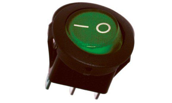 Тип превключвател: ЦК ключ с индикаторна лампа, Начин на превключване: ON-OFF, Общ брой положения: 2, Брой устойчиви положения: 2, Брой неустойчиви положения: 0, Брой нa изводите: 3, Максимален допустим ток при 250V AC: 6.5A, Тип нa изводите: за кабелна обувка 4мм, Брой на превключваните вериги: 1, Габаритни размери (Д/В): 23x29мм, Диаметър на монтажния отвор: 20мм, Цвят на клавиша: зелен, Цвят на корпуса: черен