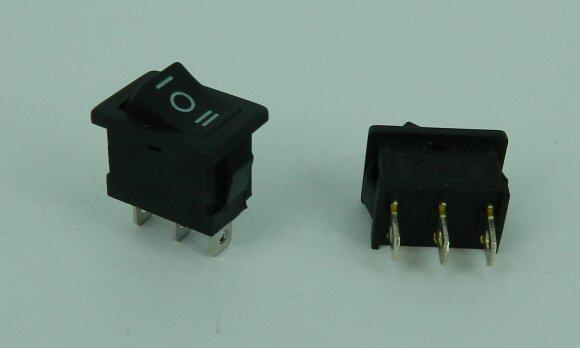Тип превключвател: ЦК ключ мини, Начин на превключване: ON-OFF-ON, Общ брой положения: 3, Брой устойчиви положения: 3, Брой неустойчиви положения: 0, Брой нa изводите: 3, Максимален допустим ток при 250V AC: 6A, Максимален допустим ток при 125V AC: 10A, Тип нa изводите: за кабелна обувка 4мм, Брой на превключваните вериги: 1, Габаритни размери (Ш/Д/В): 15x21x25мм, Цвят на клавиша: черен, Цвят на корпуса: черен