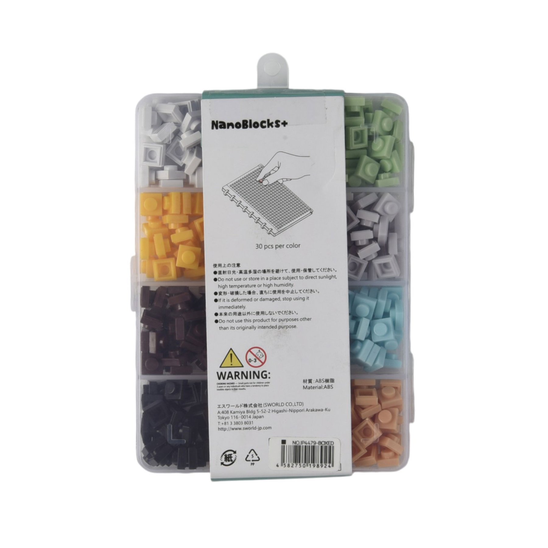• Комплектът включва 12 ярки и пастелни цвята, като от всеки цвят има по 30 блокчета, подредени в удобна пластмасова кутия с отделения за лесно съхранение.