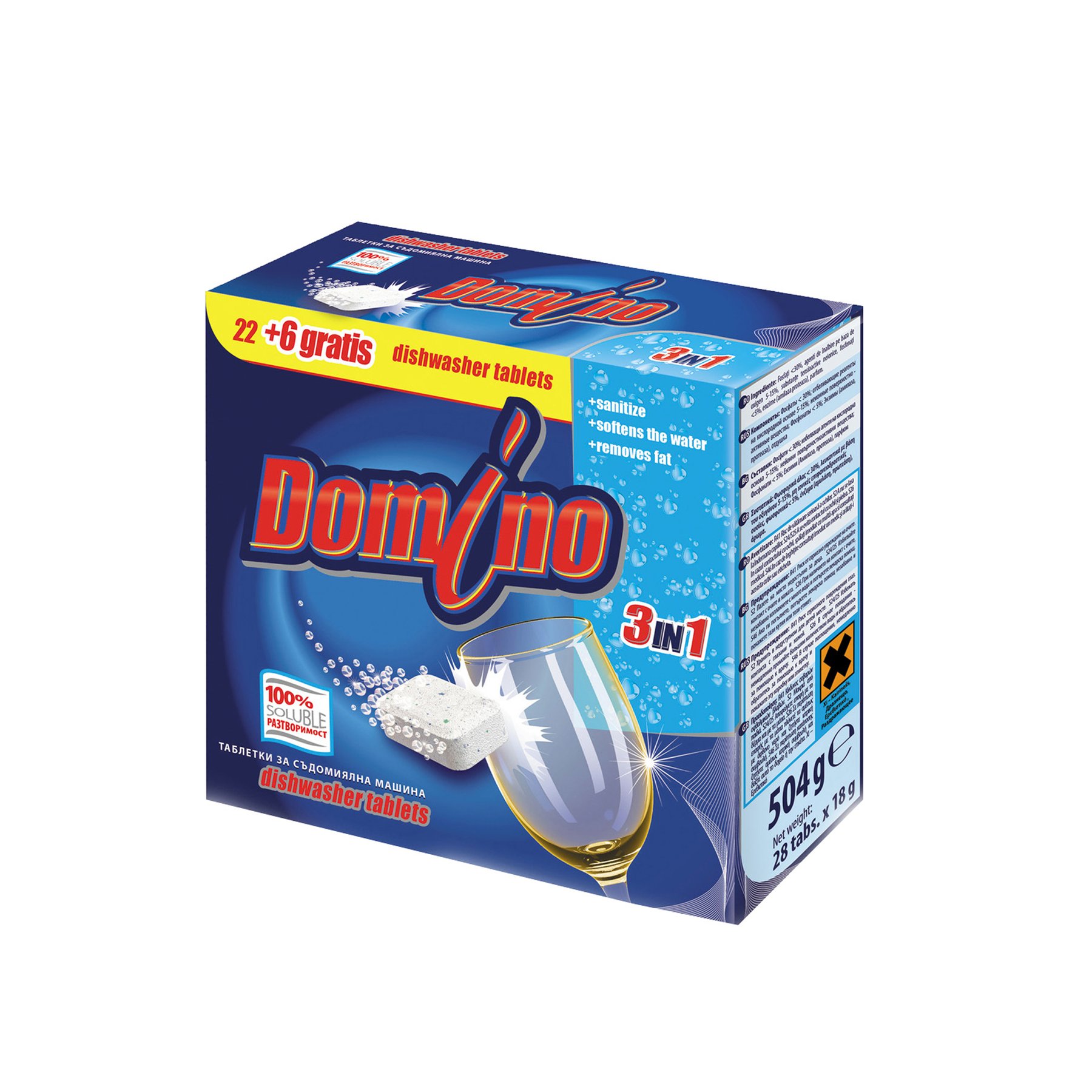 Таблетки за съдомиялна машина Domino, 3 в 1, 22+6 броя, 28 таблетки l