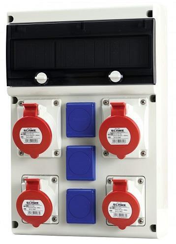 Табло сглобено с индустриални контакти, серия Block 2х 3P+N+E 16A, 2х 3P+N+E 32A и 3х Шуко, без токови защити 14DIN Scame