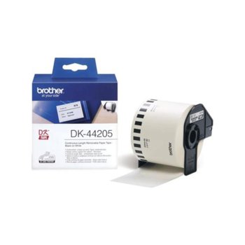 Лента за етикетен принтер Brother тип DK, черен цвят на бял фон, 62mm x 30.48m, PN: DK-44205Лента за етикетен принтер Brother тип DK, черен цвят на бял фон, 62mm x 30.48m, PN: DK-44205