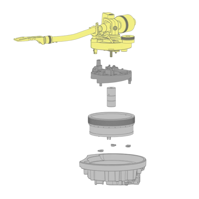 Високочувствително рамо за надеждно изпълнение Рамото, любимо на диджеите от години, се отличава с надеждния универсален S-образен дизайн със статичен баланс. Благодарение на високопрецизните лагери се постига по-висока чувствителност при първоначално задвижване в сравнение с SL-1200MK6. Това означава, че той точно проследява каналите на записа, осигурявайки отлична производителност и минимално подскачане на стилуса, дори по време на интензивни сесии на надраскване. | ![]() |