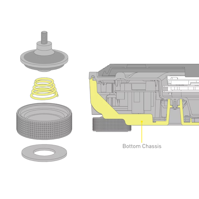 Шкаф с голяма твърдост и силно заглушаващ изолационен материал Нашият усъвършенстван дизайн на шасито, вдъхновен от грамофони от висок клас, намалява външните вибрации за първокласно аудио качество. Алуминиевото лято шаси, комбинирано с ABS и стъклени влакна, създава здрава двуслойна конструкция, която подобрява потискането на вибрациите. | ![]() |