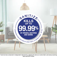 ![]() | Премахва бактериите Парата премахва до 99,99% от бактериите, вирусите и микробите* и дезинфекцира тъканите, като елиминира неприятните миризми. |