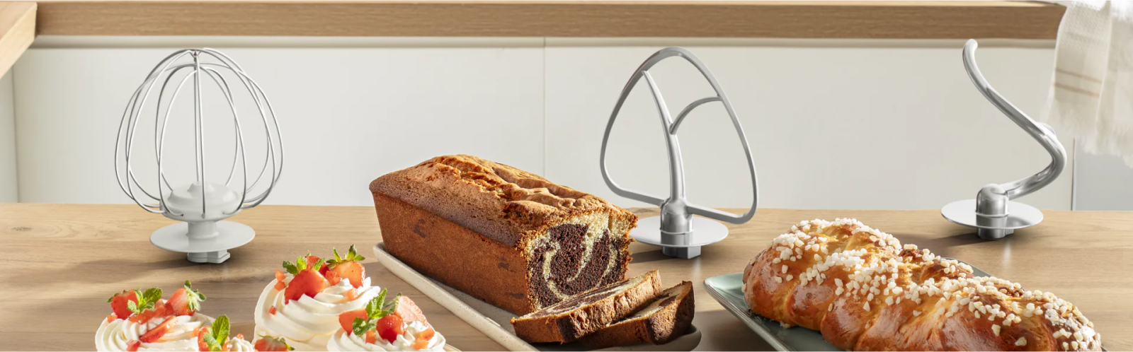 Кухненска машина, Бъркалка от неръждаема стомана, Кука за тесто, Приставка за месене на тесто, Приставка за месомелачка
