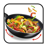 Тиганът Tefal XL Intense Wok предлага възможно най-доброто, когато приготвяте храна у дома, благодарение на щедрите си размери и идеална форма можете да приготвяте вкусни сладкиши, азиатски юфка и други ястия в него. Изпитайте практичността на незалепващата повърхност, която води до лесно почистване и отлична издръжливост и която има технология THERMO-SIGNAL™ за перфектни резултати - всички в щедри XL размери, с достатъчно капацитет за готвене за цялото семейство, всеки ден и всяка вкусна храна.