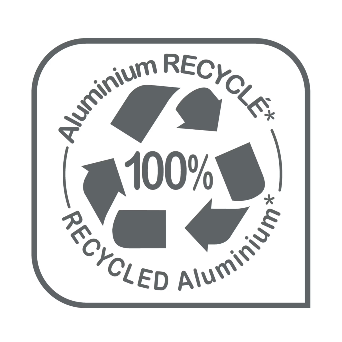- 100% рециклиран алуминий: до 2 пъти по-устойчив от обикновения алуминий;