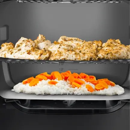 Цяло ястие наведнъж Пригответе пълноценно ястие на един път благодарение на тавата с две нива, която ви позволява да приготвяте ястия с различни съставки едновременно. | ![]() |