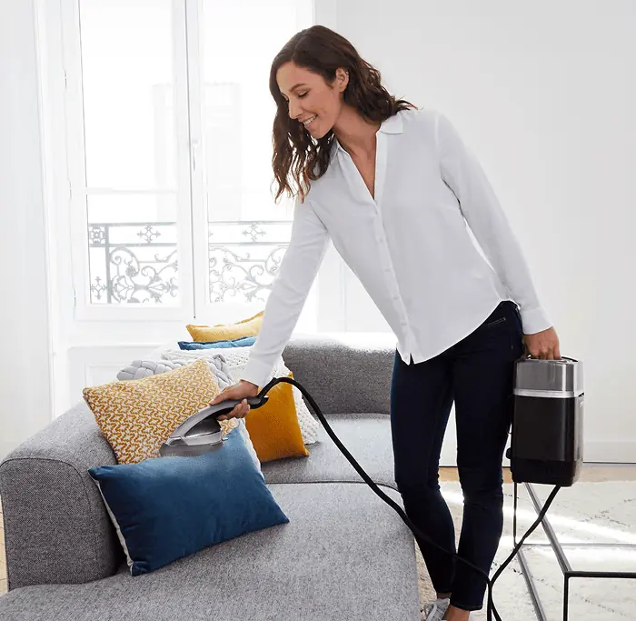 Подвижна основа Гладете с пара домашните си текстили, завеси и тапицерии, където пожелаете, благодарение на подвижната основа с резервоар за вода от 1,1 литра. | ![]() |