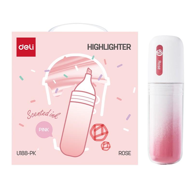 Текстмаркер с аромат на роза Deli EU188-PK, скосен връх 1-5 мм, розов пастел