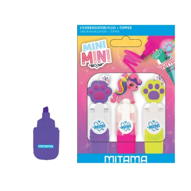 Открийте вдъхновението във всеки цвят с текстмаркери MITAMA Fluo Mini с Topper на капачката! Идеални за подчертаване на важните моменти, тези маркери ще внесат цвят и стил във вашето ежедневие.• Симпатичен дизайн с удобен Topper за лесно използване навсякъде• Капачка с чудесно допълнение Еднорог или Лапичка• Скосен връх 2.0-5.0 мм за прецизно и креативно подчертаване• Неонова цветова гама с 3 ярки цвята - жълт, лилав, розов, за забележителни резултатиИзберете MITAMA Fluo Mini – за цветно и вдъхновяващо обучение или работа!