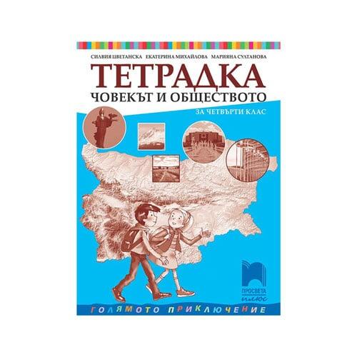 Тетрадката е важен елемент от учебния комплект по човекът и обществото за 4. клас. Тя дава възможност на четвъртокласника не само да възпроизвежда дадена информация, но и постоянно да развива своите умения, да изпитва и своята наблюдателност и въображение. Към всеки урок за нови знания и упражнения са дадени между 3 и 4 задачи. Тяхната цел е чрез откриването на решенията им ученикът още веднъж да повтори под различна форма компетентностите като очаквани резултати от учебната програма в 4. клас. Тя съдържа: