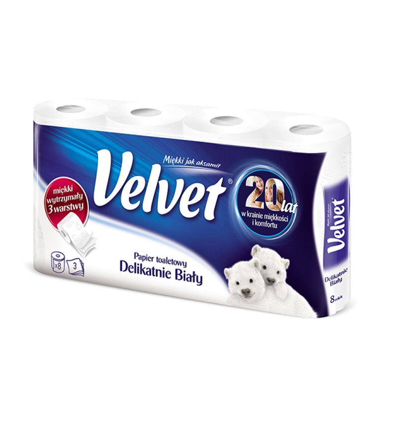 Velvet Delicate White – докоснете се до истинския лукс във всяко навиване!Тоалетната хартия Velvet Delicate White на ролка, 3 пласта, бяла, 150 къса в опаковка от 8 броя, е символ на изискан комфорт и надеждност във всеки дом. С трите си нежни, но здрави пласта, тази тоалетна хартия предлага несравнимо усещане за мекота, като същевременно осигурява необходимата здравина при всяко използване. Всяка ролка съдържа 150 къса, което гарантира дълготрайност и икономичност, без нужда от често подменяне. Без аромат и допълнителни добавки, Velvet Delicate White е перфектният избор за хора с по-чувствителна кожа или предпочитащи натуралната чистота. Бялата ѝ текстура придава усещане за свежест и безупречна хигиена, а практичната опаковка от 8 ролки я прави подходяща както за семейства, така и за офиси. Доверете се на Velvet за луксозно усещане и безупречна чистота всеки ден.