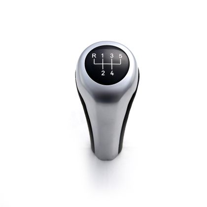 Топка за скоростен лост за BMW с 5 скорости - черна кожа / силвър мат