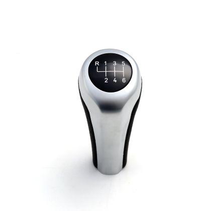 Топка за скоростен лост за BMW с 6 скорости - черна кожа / силвър мат
