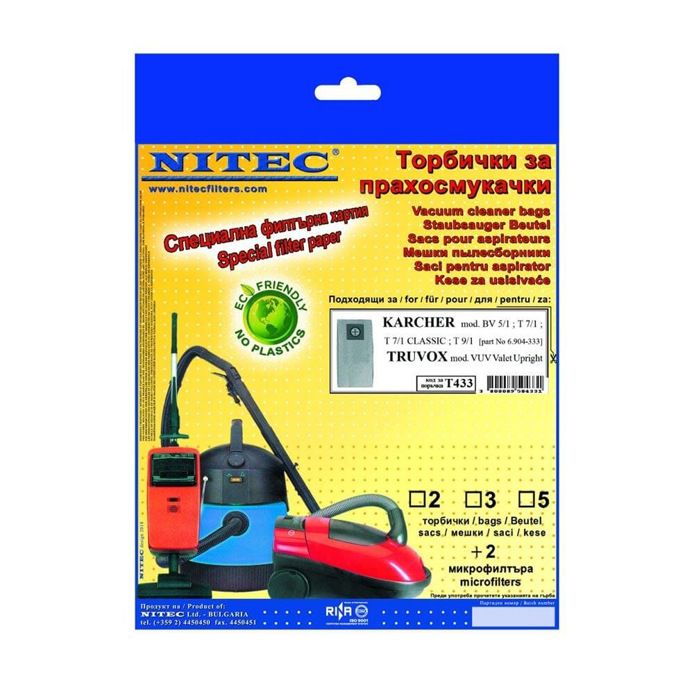 Торбичка за прахосмукачка Karcher Nitec Т433, T7/1, 5 броя, с 2 микрофилтъра