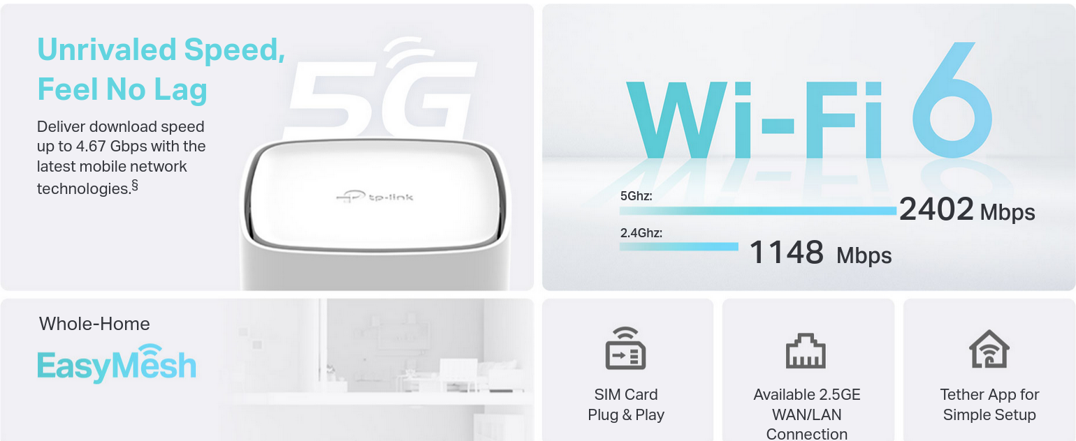 - Plug & Play - Enjoy 5G network right after inserting a SIM card.