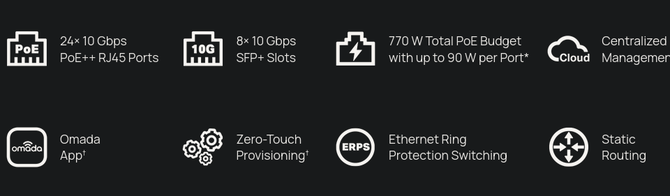 Omada 32-Port 10GE L2+ Managed Switch with 24-Port PoE++
