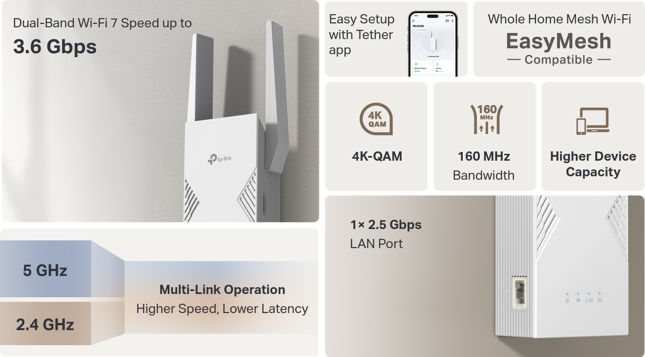 BE3600 Dual-Band Wi-Fi 7 Range Extender