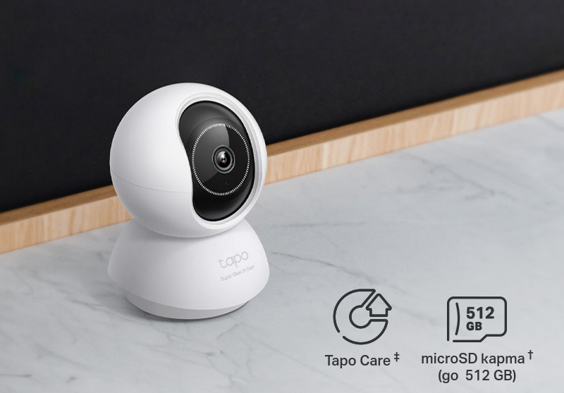![]() | Гъвкав избор на памет за съхранение Запазете записаните видеоклипове на microSD карта† (до 512 GB) или като използвате облачните услуги за съхранение Tapo Care‡. † microSD картата се закупува отделно. |