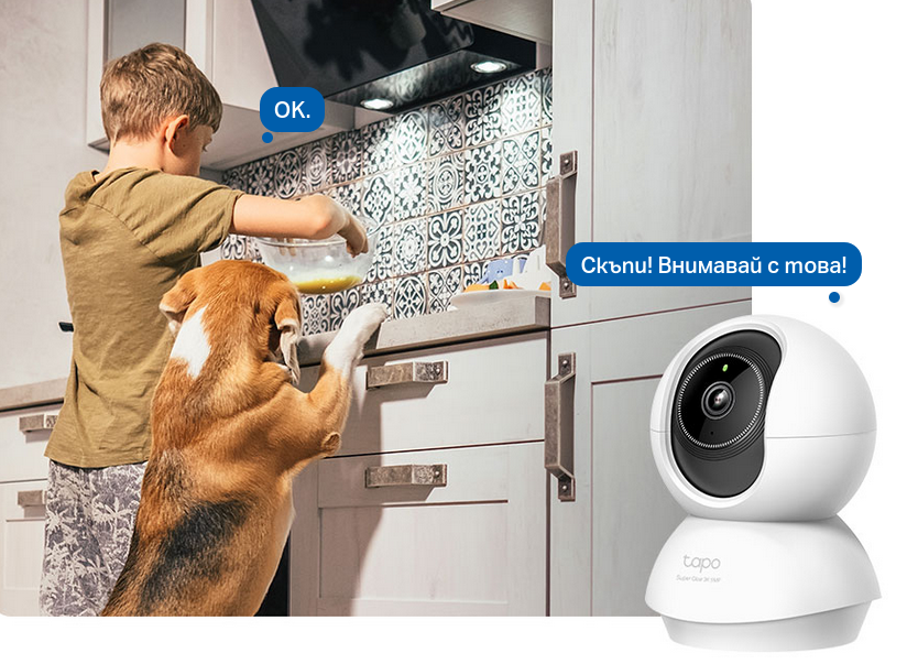 Откриване на хора Забележете всички, които се движат пред зрителното поле на вашата камера. | Откриване на домашни любимци Разберете какво прави вашият космат любимец чрез приложението Tapo. | Разпознаване на бебешки плач Уведомява ви, когато бъдат открити силни звуци. |